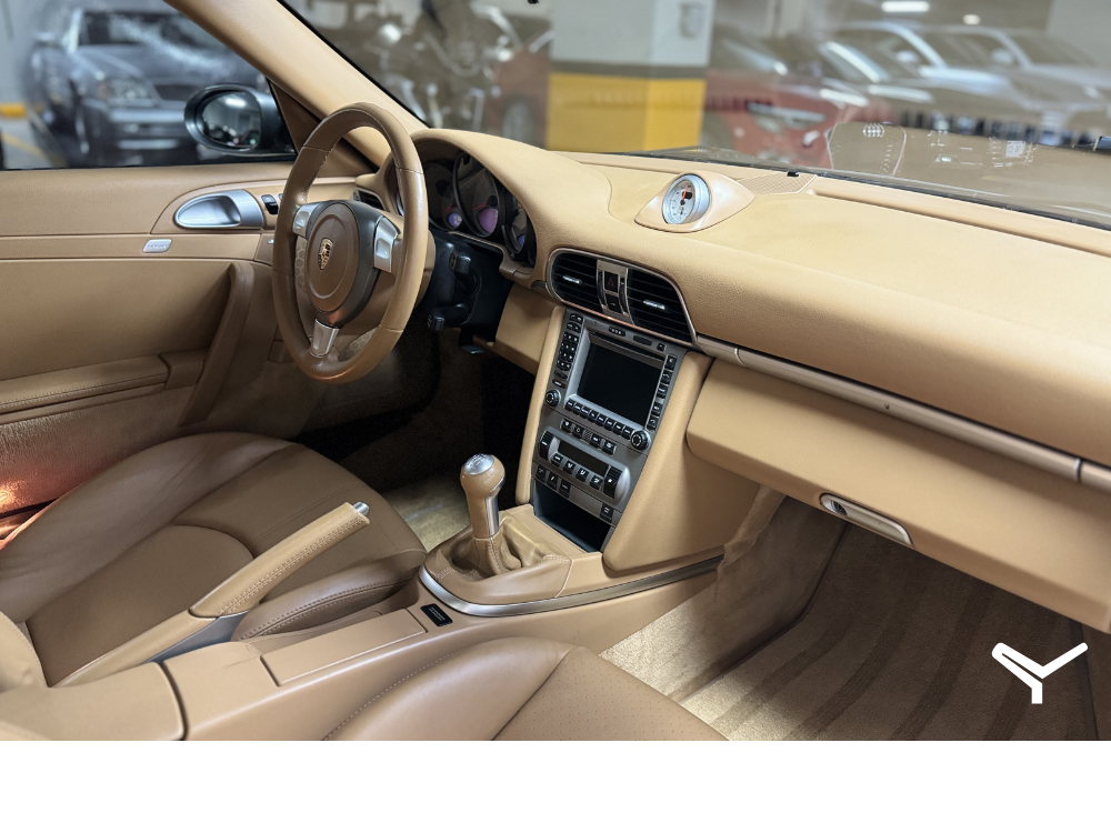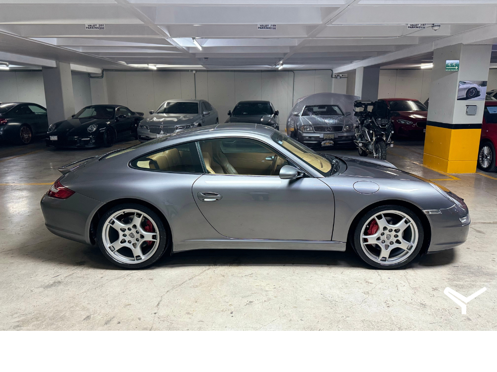 Carrera S 997 con transmisión manual y tracción trasera además de mucho equipo de serie; paquete Sport Chrono, sistema de sonido Bose, sistema de escape deportivo, asientos deportivos, cielo de alcántara, quemacocos y logo de Porsche grabado en cabeceras.