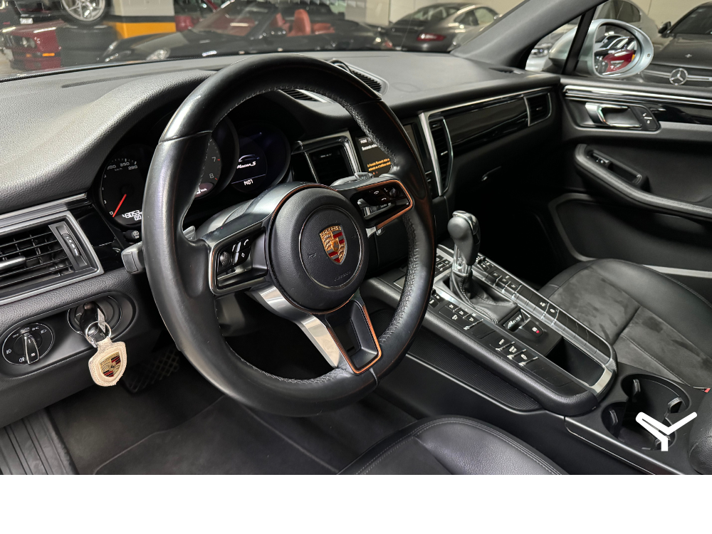 Macan S con mucho equipo de fabrica; quemacocos panorámico, laminas laterales en fibra de carbono, Porsche Comunication Management, Parkassistant, faros Bixenon, sistema de sonido Bose, Sport Chrono, Rin 21 Macan Sport Classic esmaltado en negro. Además, se le instalaron unos escapes Fabspeed especiales para Macan y se le hizo una reprogramación a 440 Hp como la versión Turbo. ¡Jala y suena durísimo!