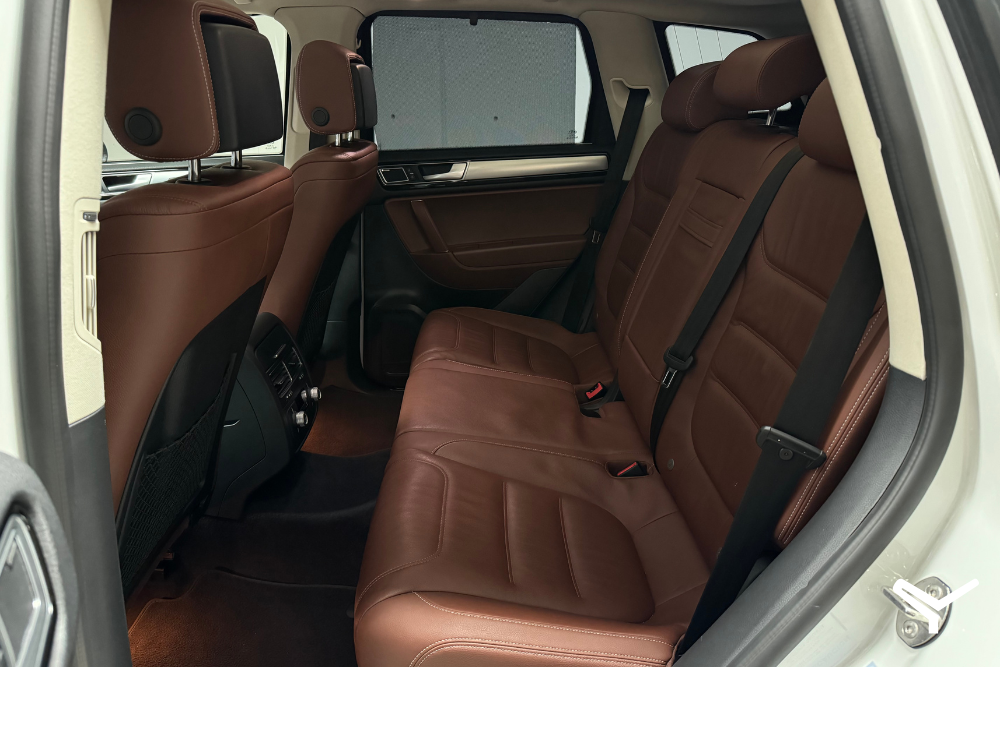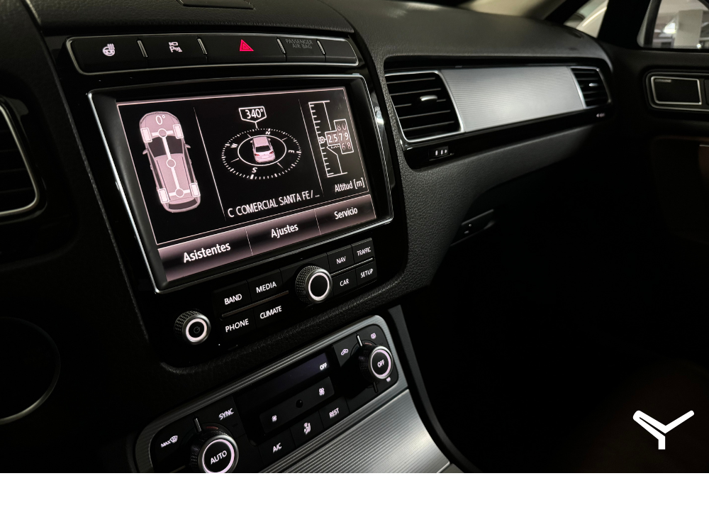 Toureg R-Line con motor V8 de 360 HP, transmisión Triptronic de 8 velocidades y tracción integral 4MOTION. Incluye modos de manejo On y Off-Road, suspensión de altura regulable, sonido premium Dynaudio, y mucho equipo más.